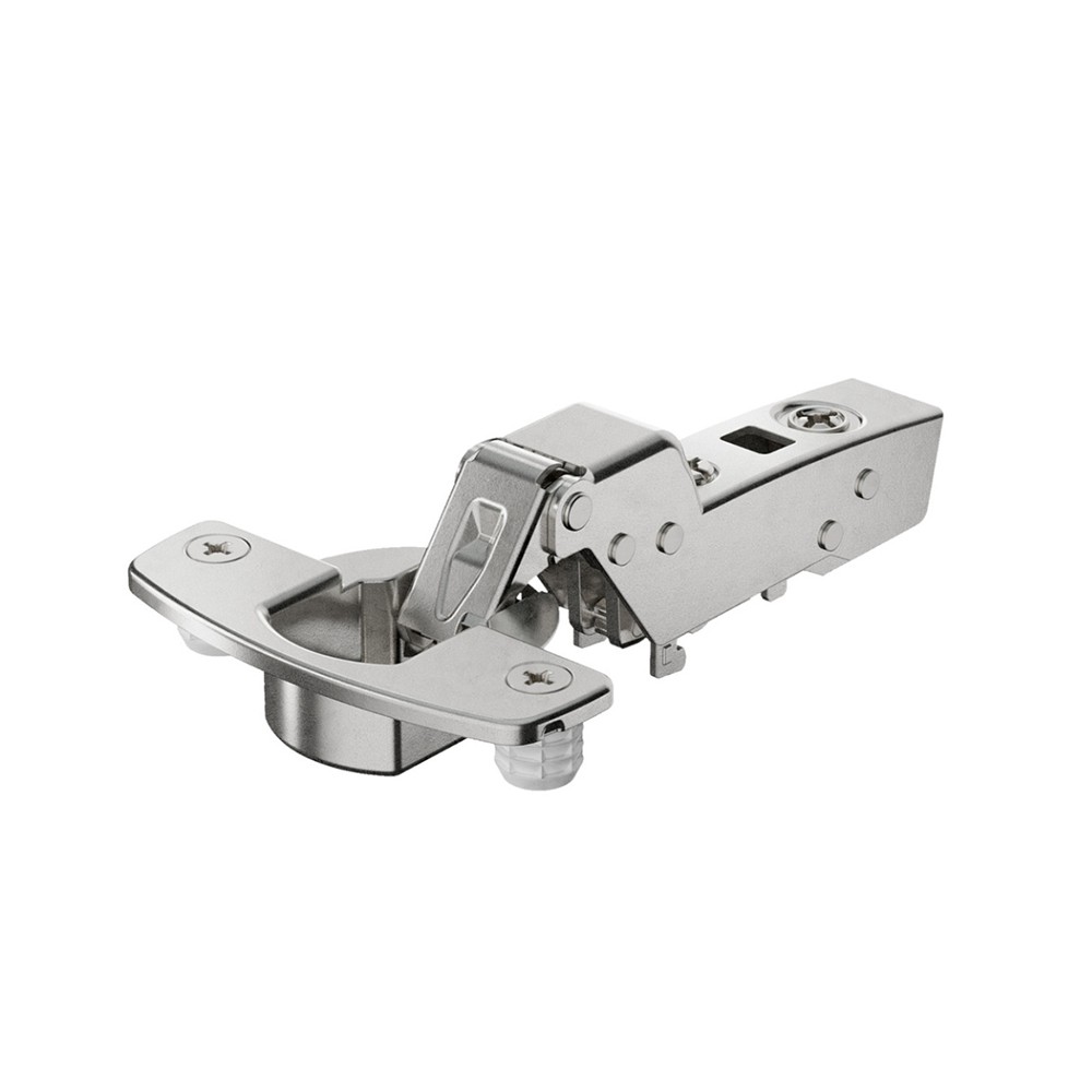 Bisagra de cazoleta para mueble de cocina Sensys con amortiguación, ángulo de apertura estándar de 110º y montaje rápido por clip a la base de la bisagra.