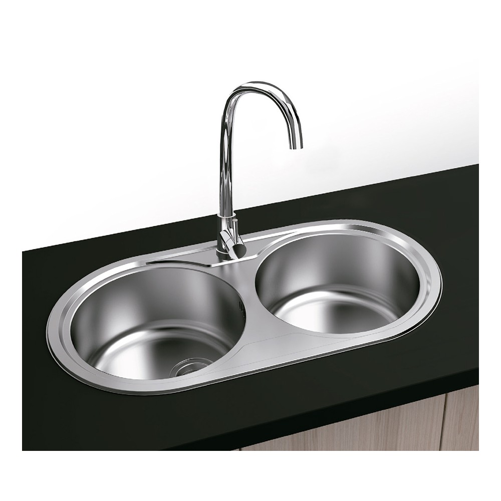 Fregadero de dos senos, fabricado en acero inoxidable AISI 304 de la mejor calidad.